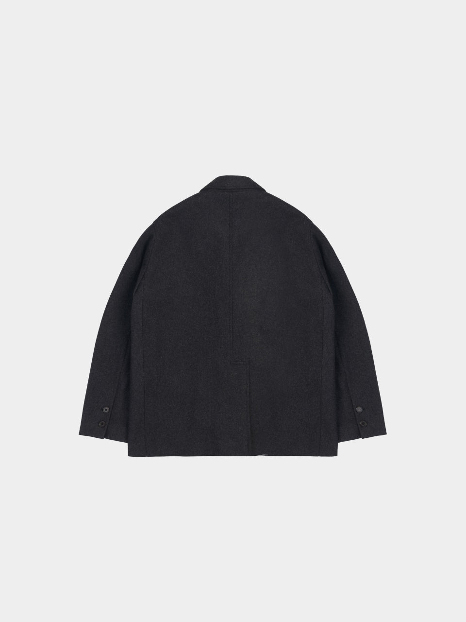 ラペルとボタンのディテールが加わり、フォーマルな場でも清潔な印象を与え、カジュアルなボトムスとも自然に調和します。