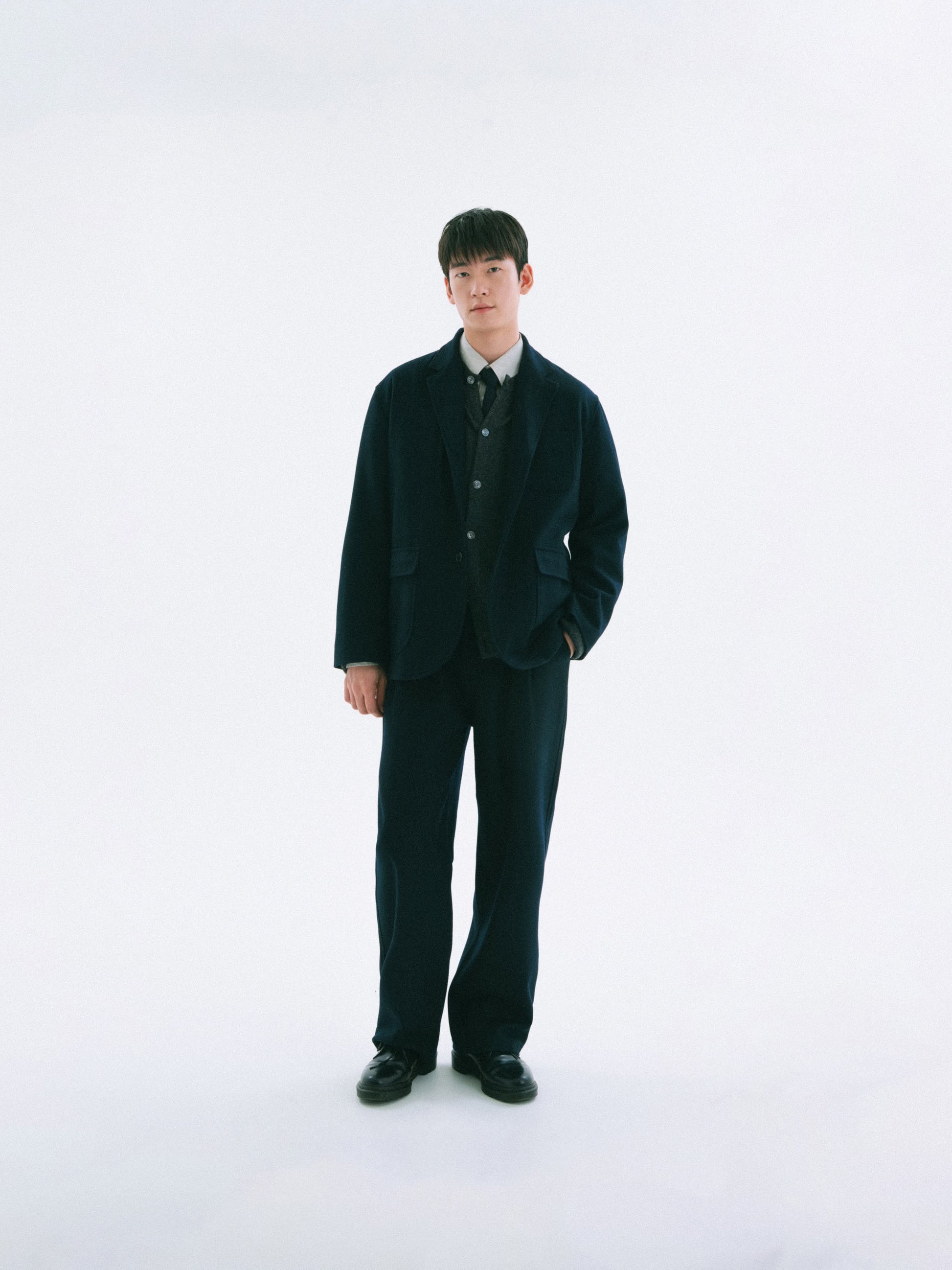 2タックのディテールが中心を引き締めて安定したラインを完成します。セミワイドフィットで動きやすく、さまざまな体型に無理なくマッチします。