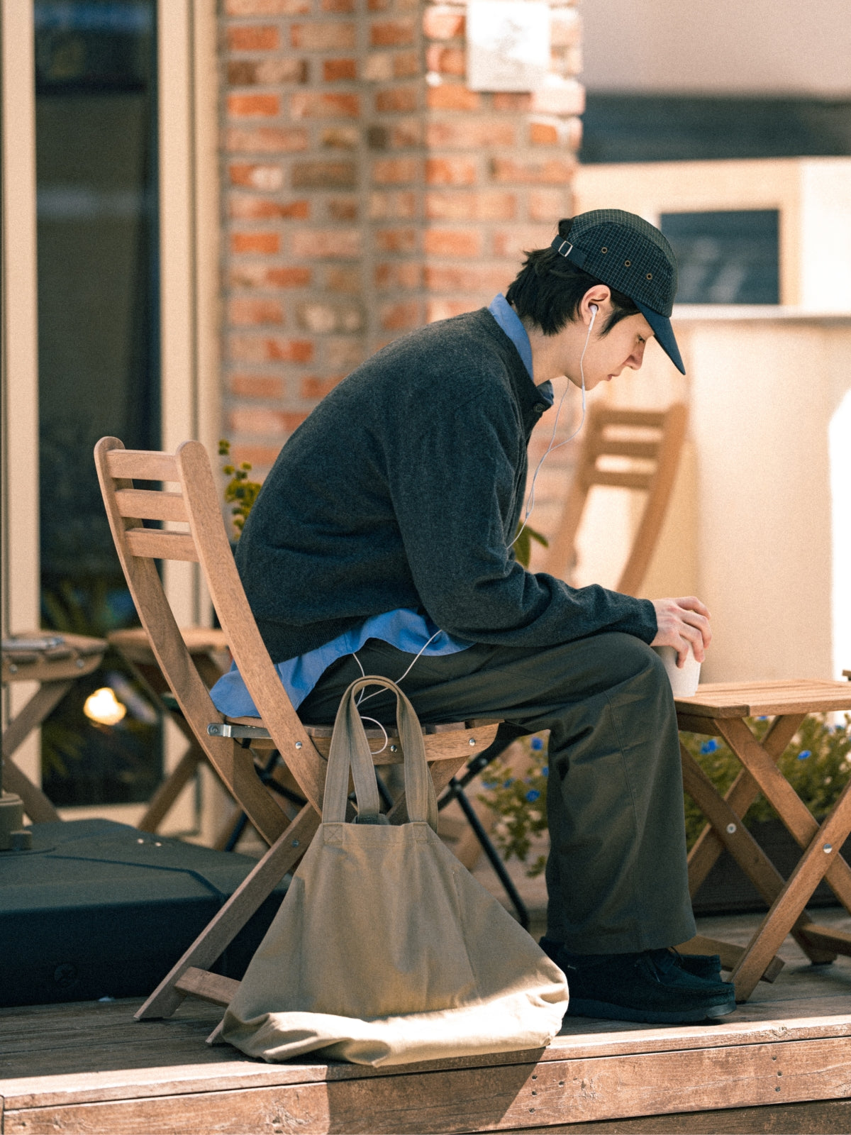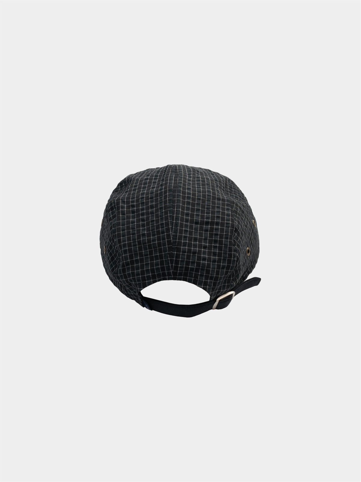 クラウンはナイロンチェック生地、ツバはコットン素材で、異なる質感が自然に対比されています。長く伸びたツバがすっきりとしたラインでクラシックな雰囲気をプラスし、控えめに表現されたチェックパターンはさまざまなスタイルに無理なく合わせられます。後ろはコットンストラップとスナップボタンで仕上げ、簡単にサイズを調整できるので、誰でも快適に着用できます。