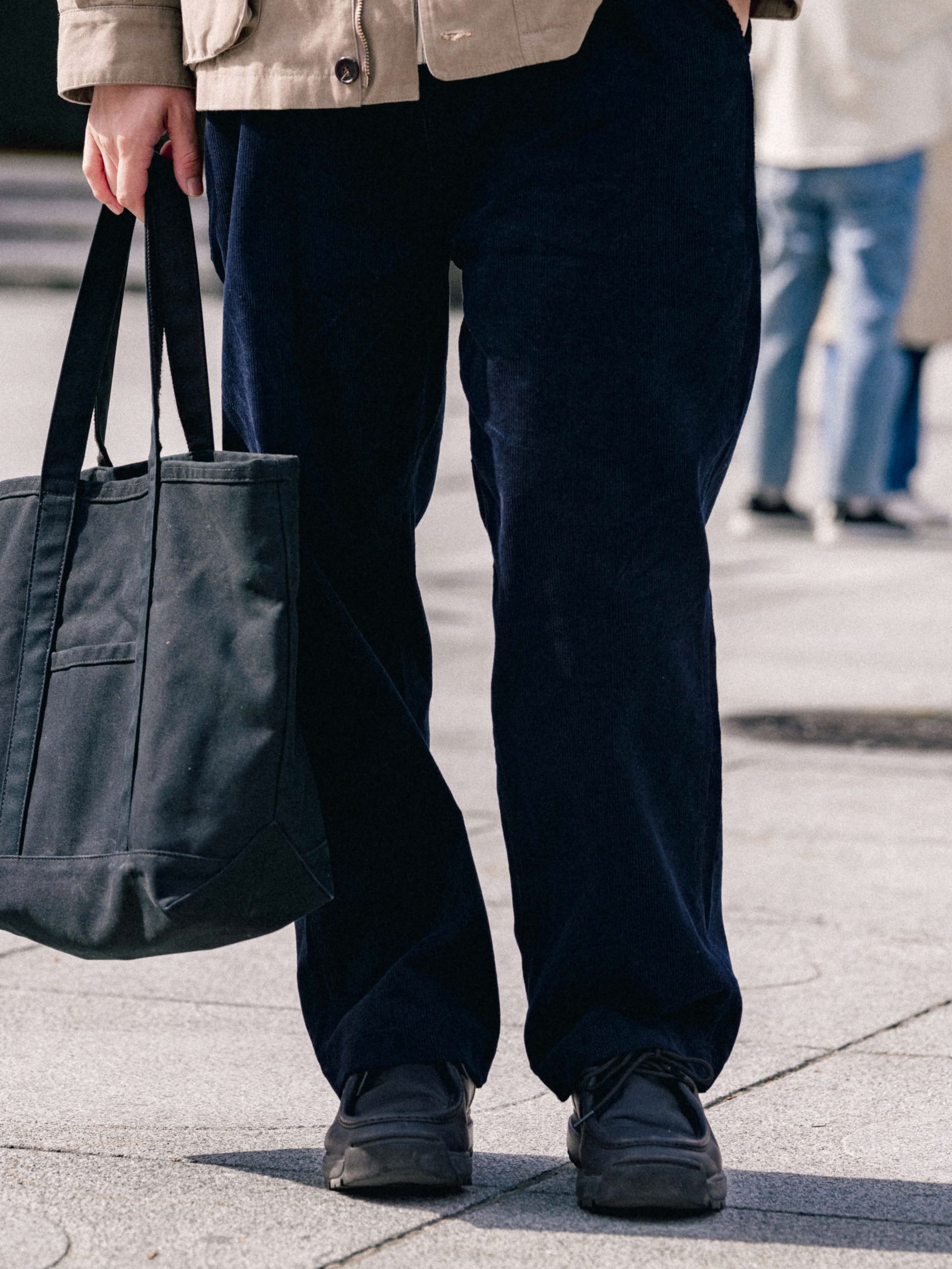 暖かい触感のコーデュロイ素材を使用しました。洗い加工により、型崩れしにくく耐久性が高く、洗濯後も安定したシルエットを維持します。