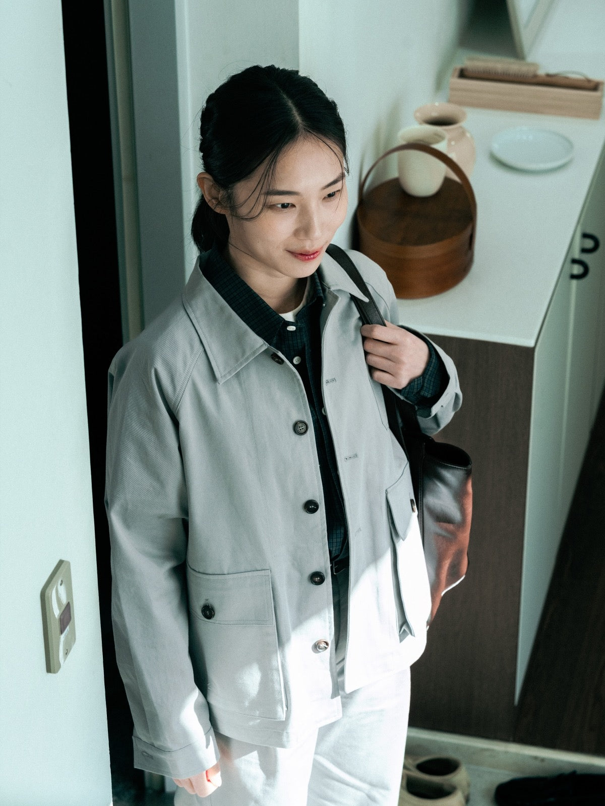 クラシックなチェック柄に春夏らしい色味を取り入れ、洗練された雰囲気に。季節に合わせて一枚でも、インナーやアウターと重ねても馴染みやすく、スタイリングが簡単です。