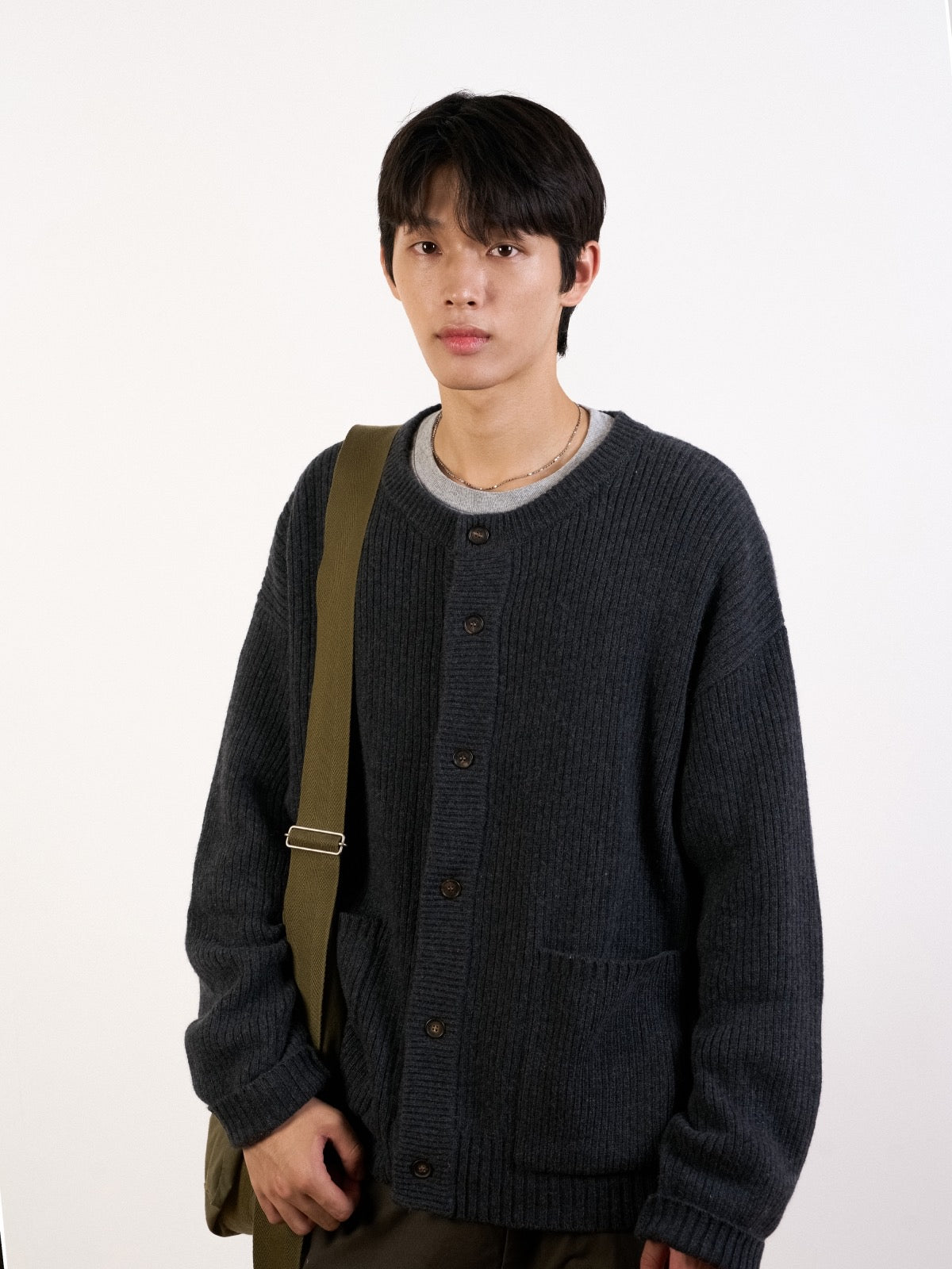 ウール混紡素材のラウンドネックカーディガンは、立体的な編みディテールと柔らかな肌触りが特徴のアイテムです。優雅に落ちるラウンドネックラインと余裕のあるシルエットが調和し、単独でも様々なレイヤードスタイルにも適しています。ウール特有の弾力性と頑丈なローゲージ編みで耐久性と実用性を兼ね備え、季節の境目でも長く愛用される商品です。