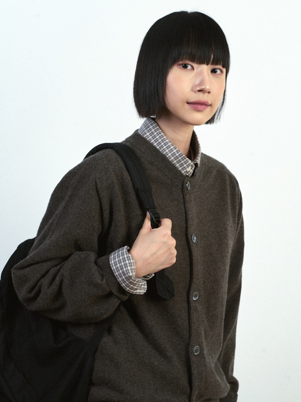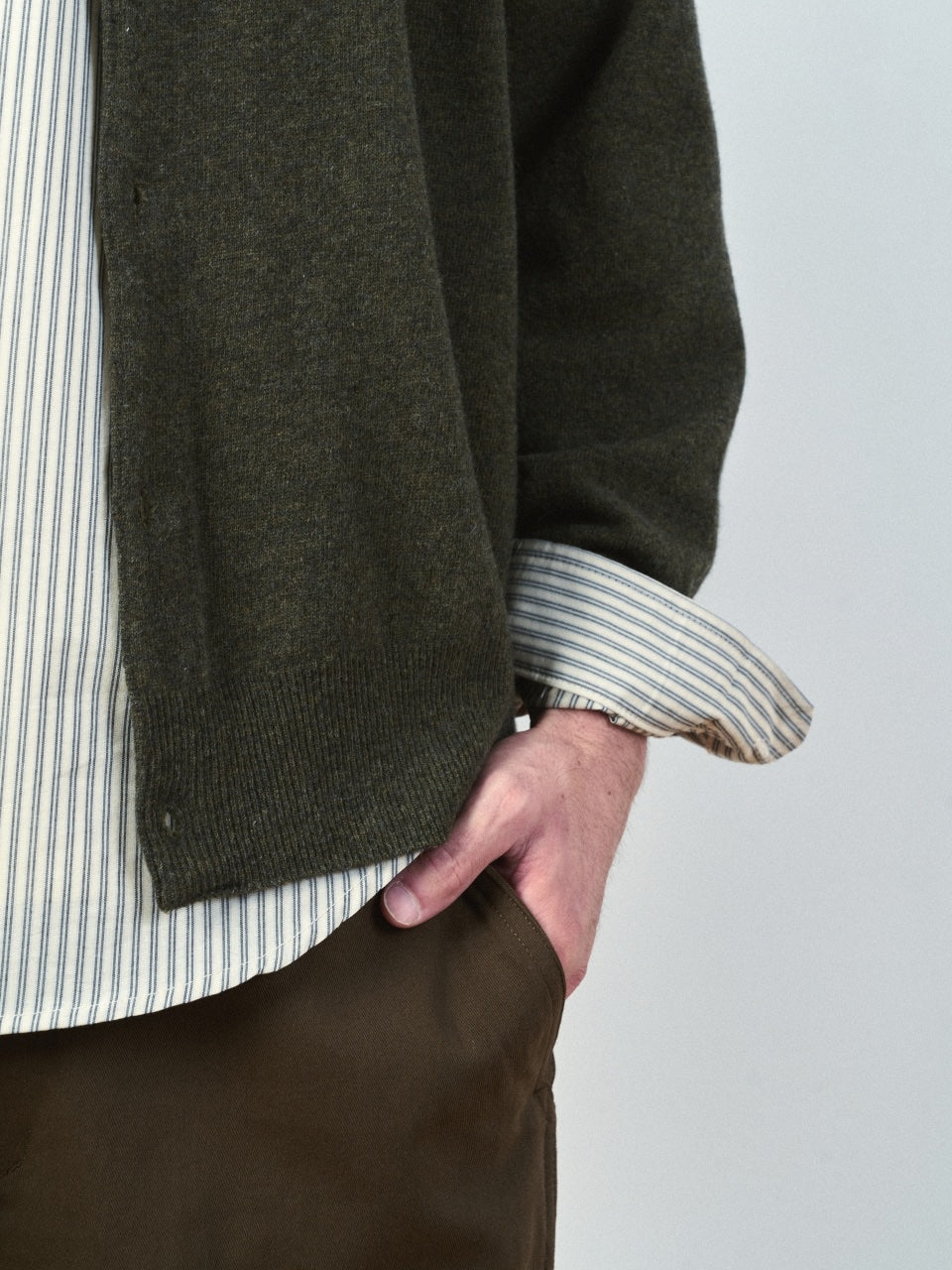 肩線が少し下がる余裕のあるシルエットで、Tシャツの上に羽織ったり、シャツと合わせやすく、3つのカラーで構成し選択の幅を広げました。程よく開いたラウンドネックは首のラインを柔らかく包み、伸びにくく長持ちするように耐久性を持たせて仕上げました。