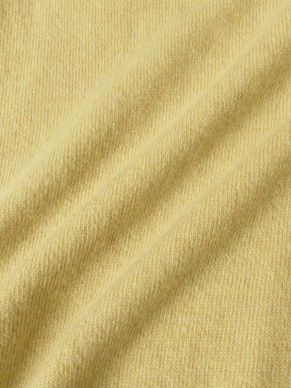 肩線が少し下がる余裕のあるシルエットで、Tシャツの上に羽織ったり、シャツと合わせやすく、3つのカラーで構成し選択の幅を広げました。程よく開いたラウンドネックは首のラインを柔らかく包み、伸びにくく長持ちするように耐久性を持たせて仕上げました。