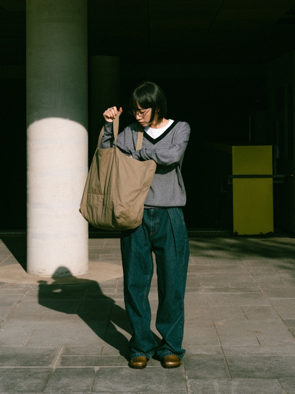 ワイドシルエットのゆったり感としっかりとした仕上がりを兼ね備えたデニムパンツ