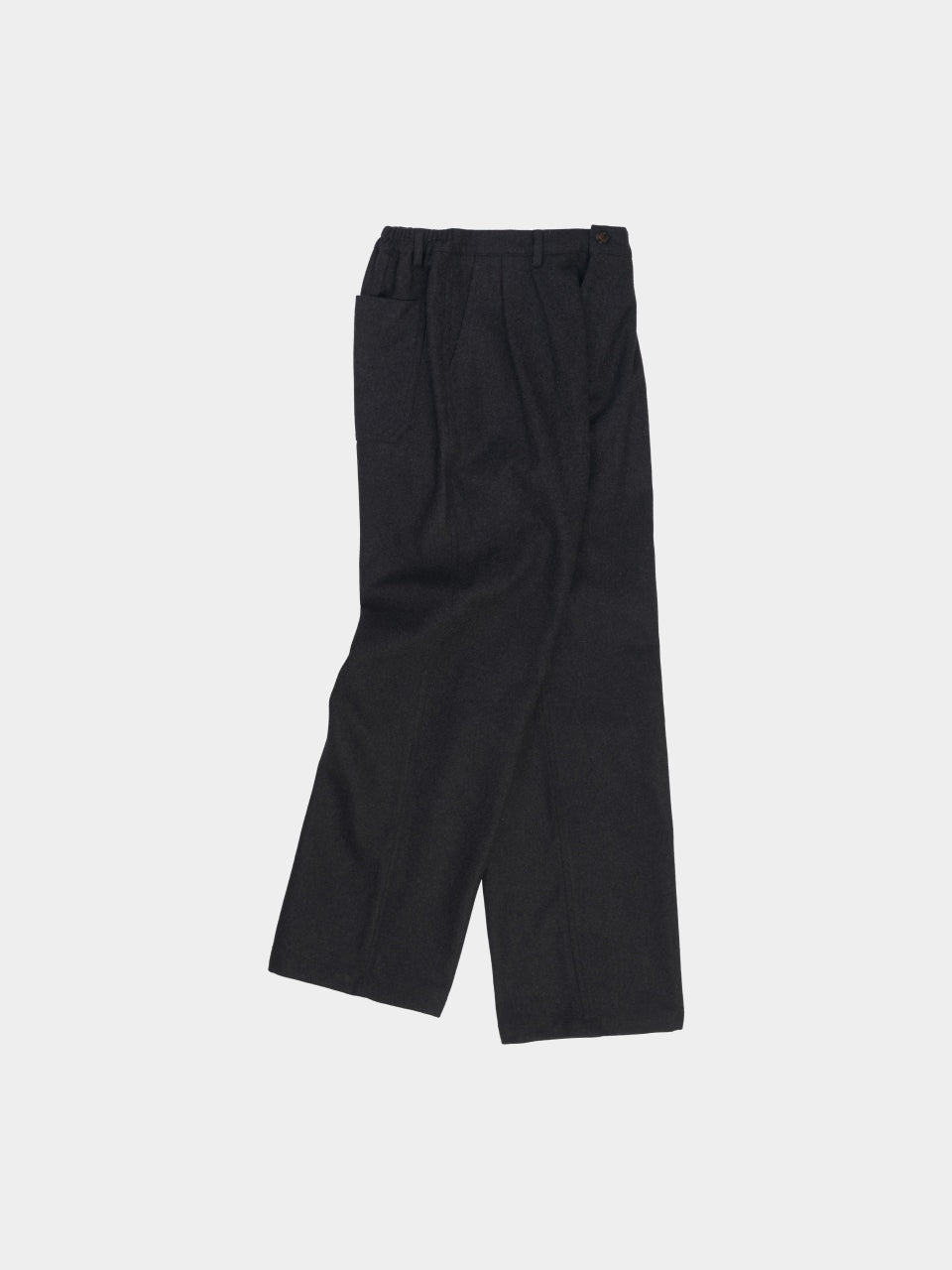 ダブルタックのディテールによって余裕のあるラインを作り出し、ウエスト後部の半バンドが長時間の着用でも快適さを保ちます。外観は整然と、着心地は柔らかく整えられています。