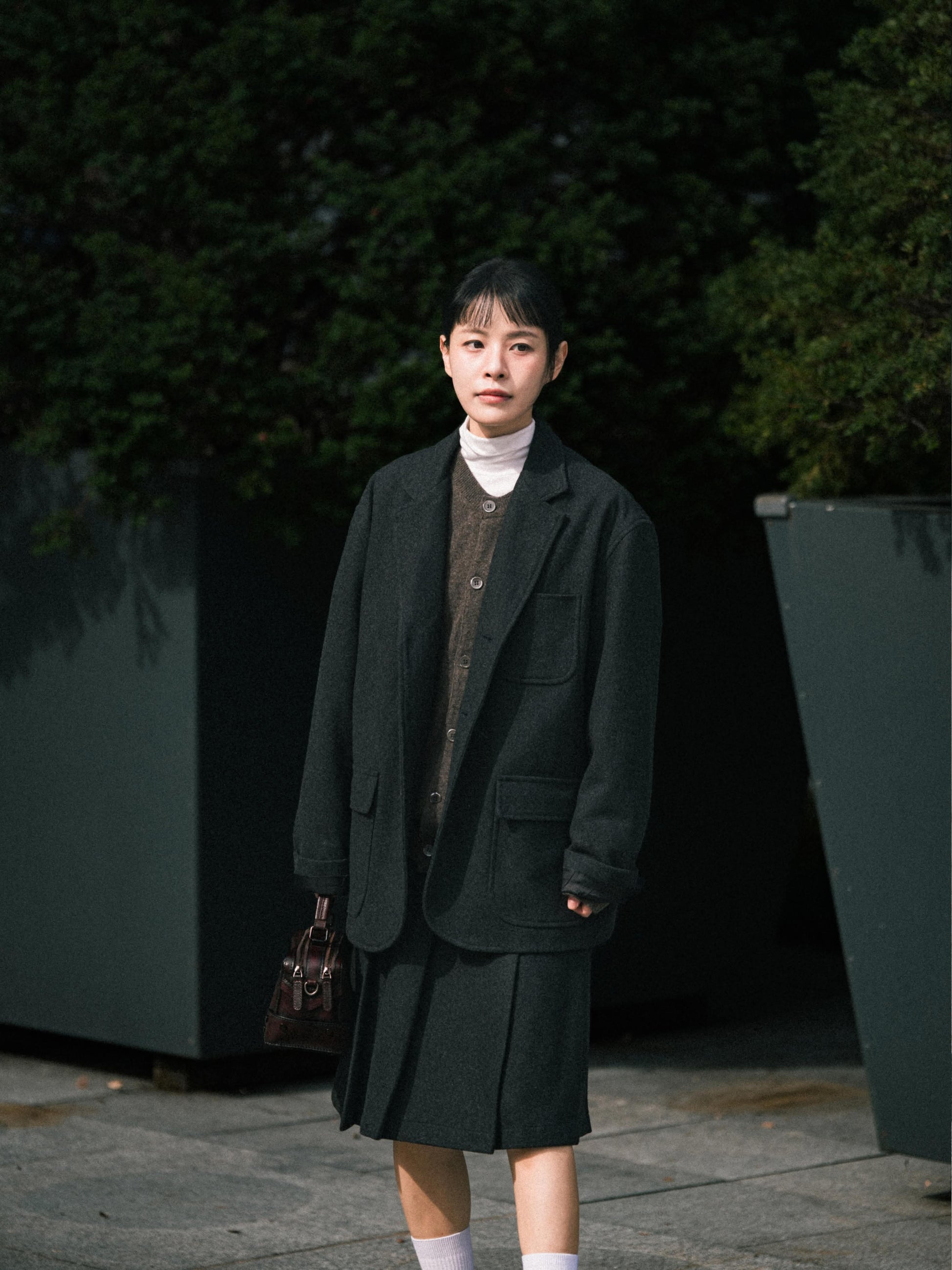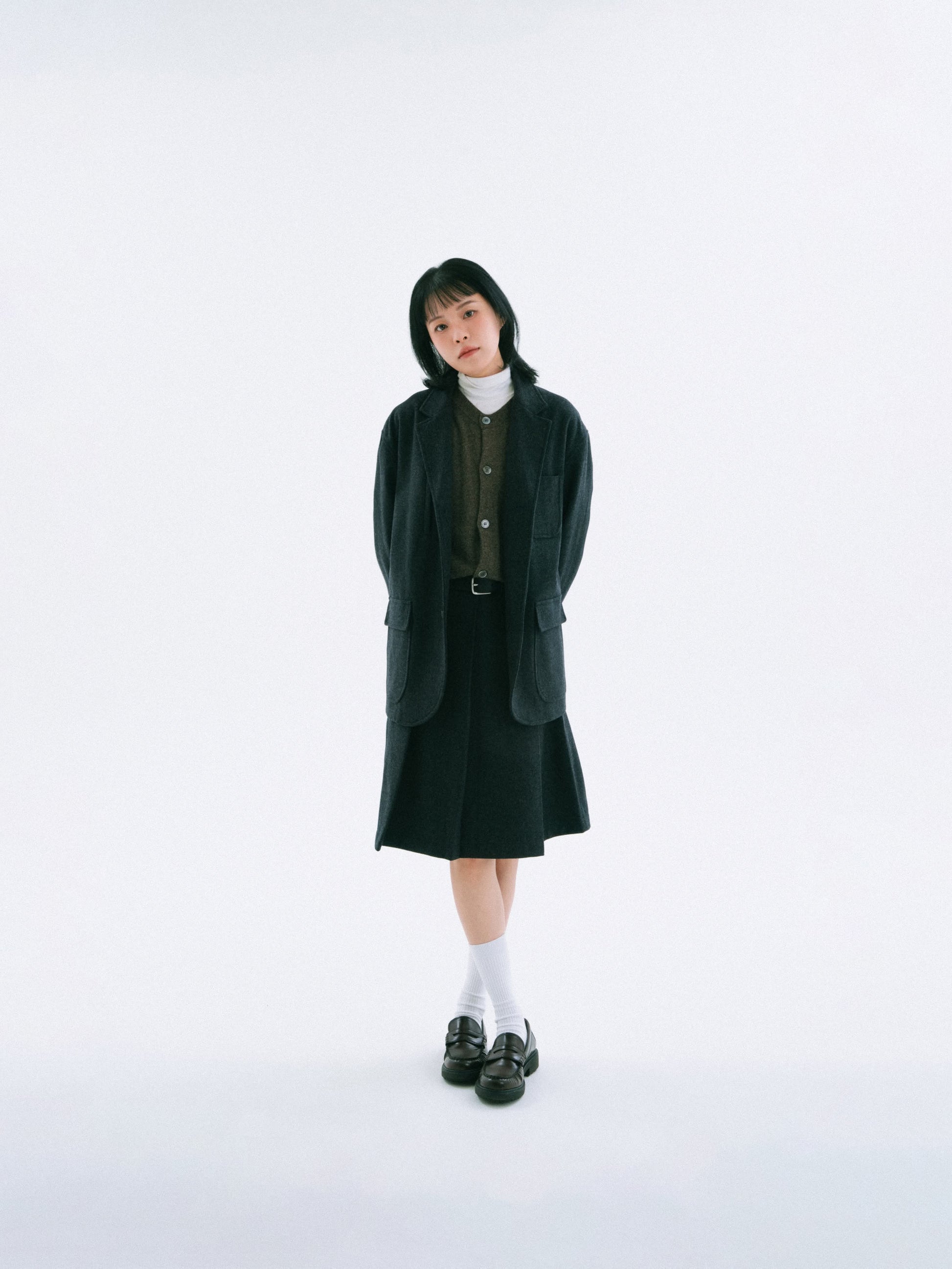 冬の空気の中でも、きちんとしたシルエットを失わないプリーツスカートです。